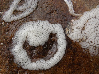 【左】ゴカイの仲間(釣り餌屋さんはイシゴカイ)      【中】ヨロイイソギンチャク      【右】タテジマイソギンチャク