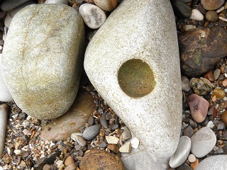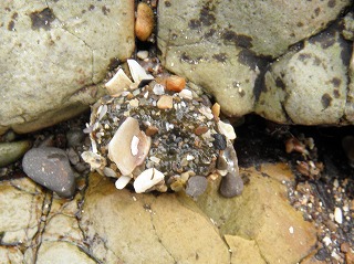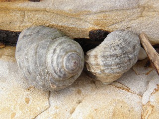 【左】ウミウシの仲間の卵塊         【中】イシダタミ         【右】タマキビガイ
