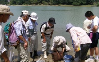 【行事名】 水の中の生き物を観察し、水環境を考えよう(森林指導者研修会)
