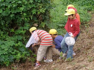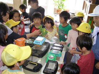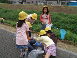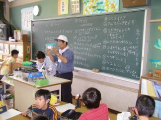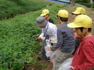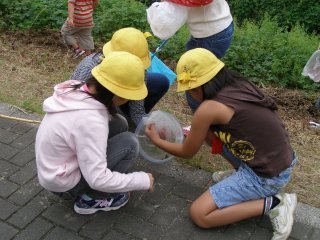 大府市石ケ瀬小学校3年生が理科の「こん虫を調べよう」をテ−マに屋外に出て昆虫を観察をすることのお手伝いをしました。