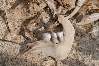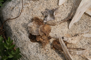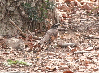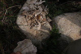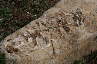 【左】 ツグミが虫を探しています。 【右】骨が散乱していました。