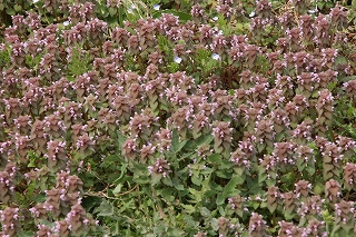 【中】ヒメオドリコソウのじゅうたん。かわいい花ですね。帰化植物のヒメオドリコソウはどんどんふえています。