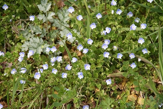 【右】同じ帰化植物のオオイヌノフグリも満開です。