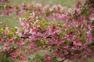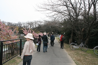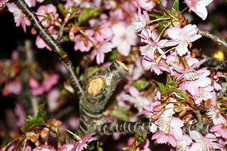 【左】きれいなカワズザクラですが,花が咲いた太い枝が数本ずつ,20株以上にわたって切り取られていました。残念です。