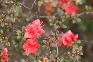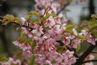 【右】満開過ぎのカワズザクラは真ん中がより赤くなります。