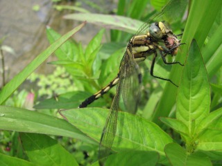 【右】シオカラトンボの雌が食事中
