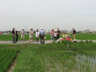 アカトンボの羽化した跡のヤゴのの抜け殻の観察を希望していましたが見かけられませんでした。エコたんで取り組んでいる水田は農薬を使っていませんのでアカトンボの発生条件はいいはずです。しかし、今年は見られませんでした。今からでしょうか。しかし、ヤゴは見られませんでしたので何かの理由で発生しませんでした。