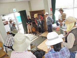 壱町田湿地内では「湿地を守る会」の方が、ポイントごとに単眼鏡を設置していて、それを覗いて湿地植物の姿を目の当たりにし、また現物を指しての懇切な説明に感心しきり。他にこの湿地の説明パネルの展示、湿地内生息の昆虫標本の展示、湿地の四季のCD放映と、学習ムード満載であった。オニヤンマオオシオカラトンボ、アゲハ、アマガエルなど生きものが豊富なこと、湿地植 物のあまりに小さく、けなげなことに驚きの声が多く聞かれました。