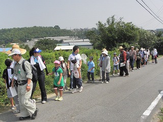 梅雨明けから連続して真夏日・猛暑日。本日8月1日も真っ赤に照りつける太陽の下での観察会でした。COP10パートナーシップとして、愛知県知多県民センターが主催し、知多自然観察会が実務面をお手伝いしての観察会。