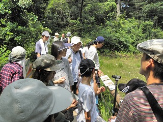 【左】壱町田湿地を守る会の会員の説明解説を聞きました。