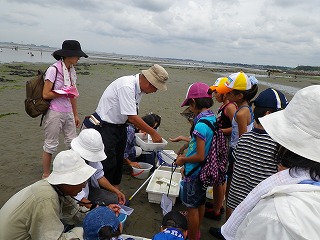 10時前に海岸に降り立った。各家族には1名のスタッフが付添い、観察と採集に向けて広い海岸に広がった。