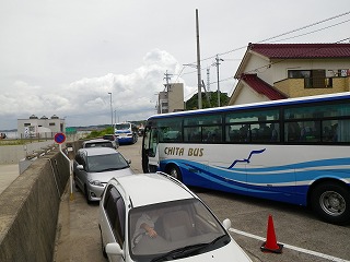 参加者の多くは知多半田駅、常滑駅から知多乗合バスで坂井区公会堂へ集合した。