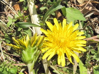【左】ザトウムシの仲間 【中】交雑していると思われるタンポポ 【右】オオジシバリ