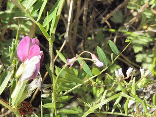 【左】ヘビイチゴ 【中】オランダミミナグサ(外来) 【右】左からカラスノエンドウ、カスマグサ、スズメノエンドウ