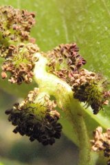 【左】トウグミ 【中】フウ 【右】ヤマモモの花、左(♀)、右(♂)