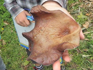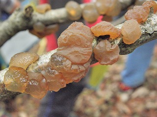 ザトウムシの仲間、ツチグリ、大きなアラゲキクラゲ、タマキクラゲ、コウヤクタケの一種