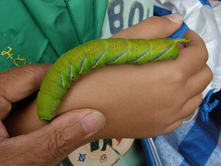 【左】スズメガ類幼虫 【中】エンマコオロギ 【右】ヒゲジロハサミムシ