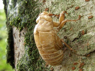 【左】クマゼミ 【中】アブラゼミ 【右】ルリチュウレンジバチ
