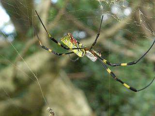 【左】アメリカジガバチの巣 【中】マクラギヤスデ 【右】ジョロウグモ♀