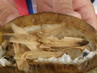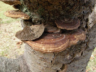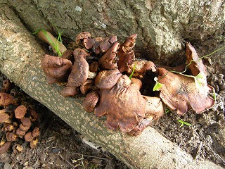 【左】スダジイ 【中】アシグロタケ 【右】ヒイロタケ