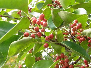 【左】ハンテンボク 【中】ハンテンボクの種子 【右】クロガネモチ
