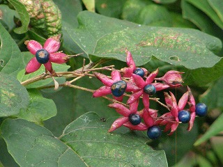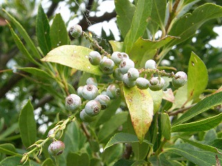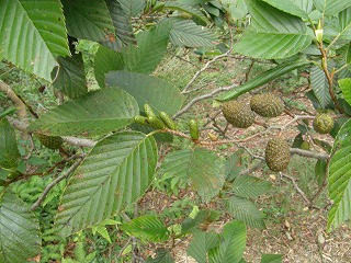 【左】サワフタギ 【中】クサギ 【右】ヤシャブシ(小さいのは今年の花になる)