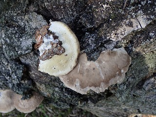 【左】クジラタケ 【中】コフキサルノコシカケ 【右】オオワライタケ(毒)