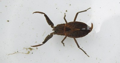 【右】チビミズムシの一種です。半翅目(はんしもく)といってセミやカメムシの仲間です。
