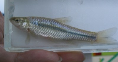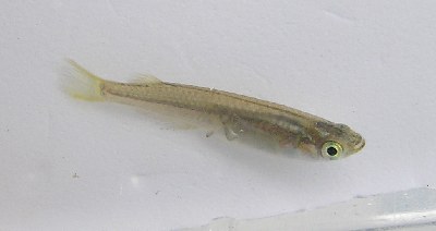 【左】コイの仲間のモツゴです。受け口で小さく、おちょぼ口のため、別名「クチボソ」と言われています。