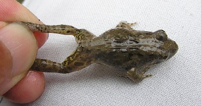 【右】ダルマガエルみたいです。ダルマガエルは絶滅危惧種になっています。知多地方ではよく見ますが全国的には貴重な生き物です。