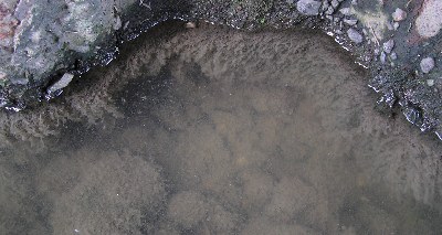 【右】よどんだ所にミズワタが見られました。これは、大変汚れている証拠です。
