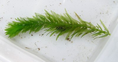 【右】外来植物のオオカナダモで、各地で異常繁殖し困っています。汚れに強い植物で、水を浄化し、酸素をたくさん出してくれます。しかし、外国産のものではなく国産の植物が生活できるといいですね。