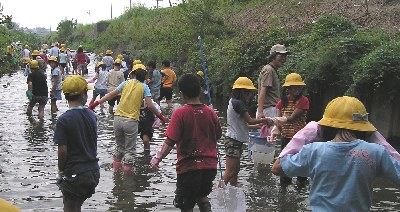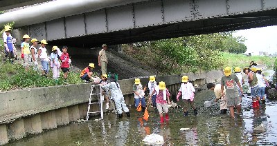 【左】少し深いところもありました。川は浄化槽の匂いがしました。