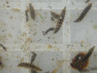【左】ヘイケボタル幼虫 小分け 【右】ヘイケボタル幼虫 放流