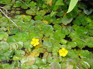 【左】フジバカマのポット苗作り 【中】外来種のお話 【右】アサザ(開花)
