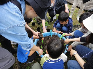 【左】フジバカマポット苗作り 【右】閉会セレモニー