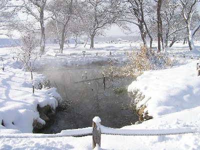 【左】ここは湧水地帯で水が湧き出ているところです。