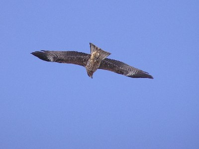 【右】トビが澄んだ青空でくるりと絵を画いて飛びました。