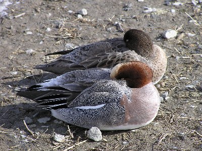 【左】足元でヒドリガモの夫婦が仲良く寝ていました。