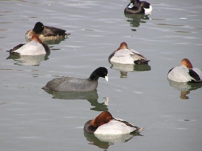 【左】ホシハジロ、キンクロハジロ、オオバンがゆったりとしていました。