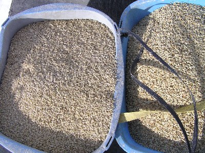 【右】餌は玄米と籾です。世界には白鳥に生まれ変わりたい人が13億人いるそうです。