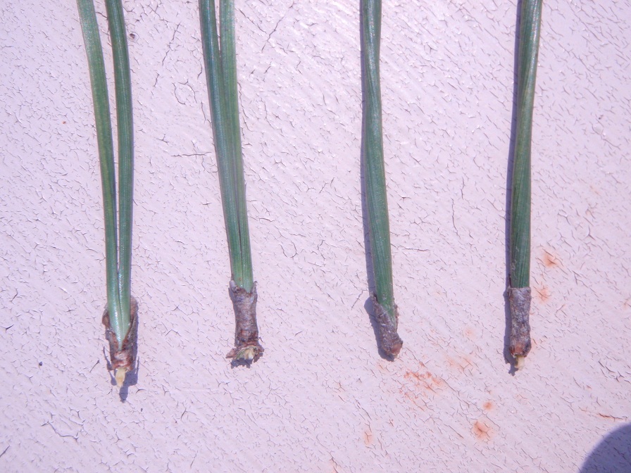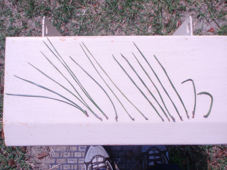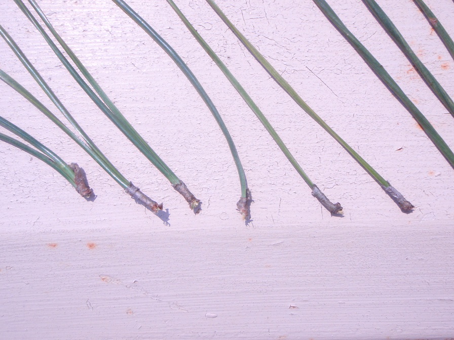 【上2枚】リュウキュウマツ…1束3針葉。 ネット上では1束2針葉が多い。5針葉もあるようだ…。