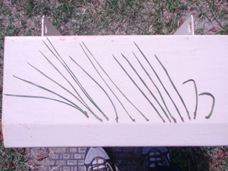 【右】左の6本…黒松の1束2葉と1束1葉 右の7本…一葉松の葉(すべて1束1葉のもの)