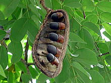 【左】緬茄の“莢(さや)” 【右】“なかみ”の様子…別名“仙人の歯”とも言うらしい
