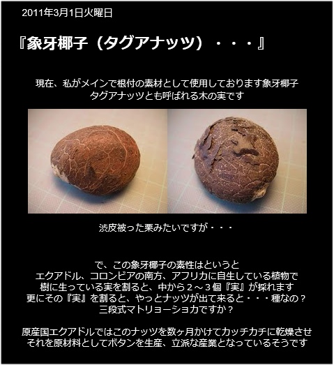それで、この象牙椰子と緬茄に私(榊原正)は、益々、興味が湧きましたので、ネットで更にチェックし、以下のようにまとめてみました。
