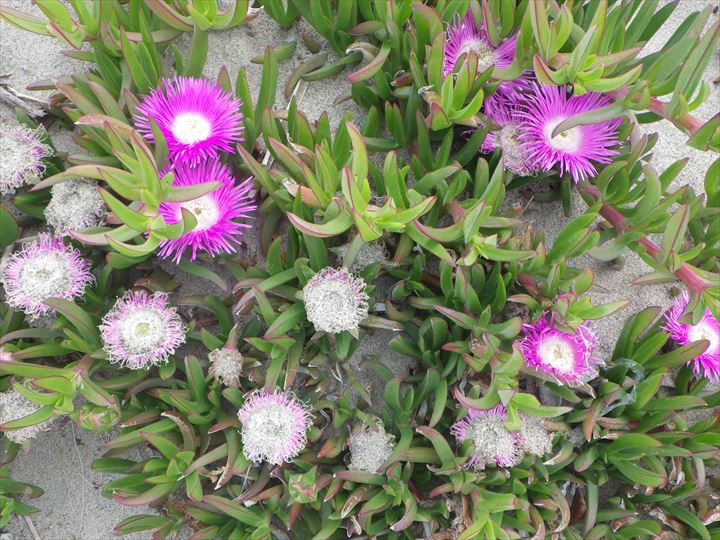 B定着初期/分布限定 海岸や撹乱地にマット状に生育す。水はけが良い土壌と、日当たりが良い環境を好む。 浸食防止、観賞用、被覆植物として利用され食用や薬用にもされる。日本でも、流通、市販されている。 海外で侵略的な外来種とされており、海浜の生態系への影響が大きく、動物により種子が散布されること等から、こうした環境に侵入するおそれのある場所には、持ち込みを行うべきではない。