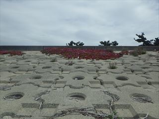 上の3枚の写真から→バクヤギクは、ハマヒルガオみたいに、堤防の下の砂浜に降りて来れないのではないか?…と思うのですが、いかがでしょうか…。
