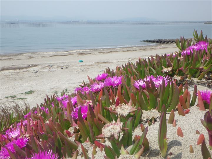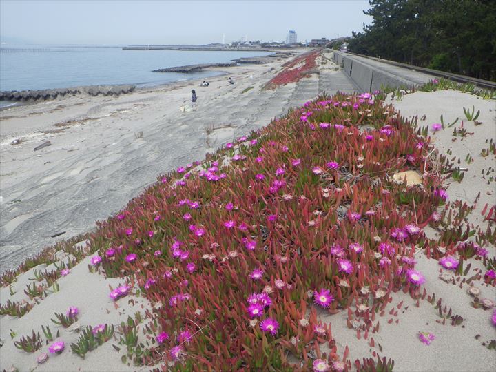 ある国の海岸では強烈な侵略植物として徹底的に駆除される植物であろうが、この西ノ口海岸では、まだ、被害は出ていない(?)。