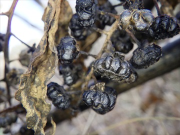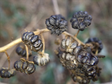 【左・右】上2枚の写真の実が付いていた枯れた株。茎が見事に黒くなっていた。